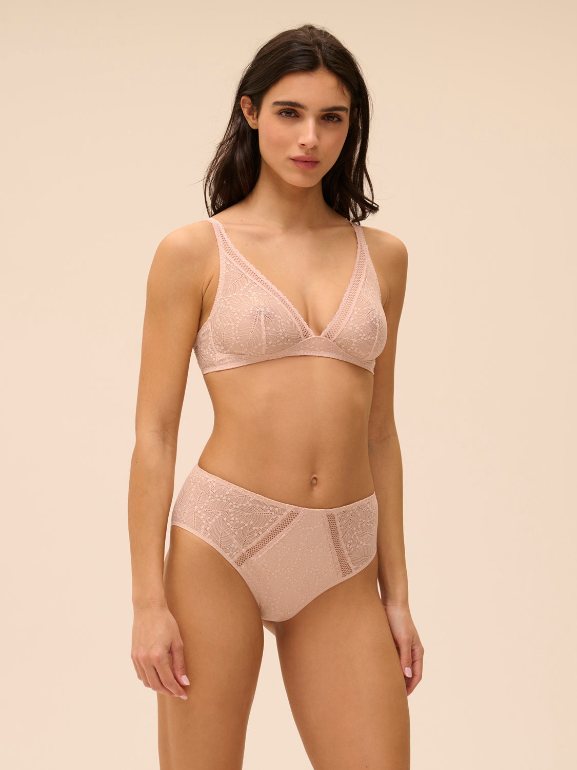 Dentelle délicate et légère, invisible au porter. Quotidienne et raffinée. À adopter cette saison en Rose Texas.
