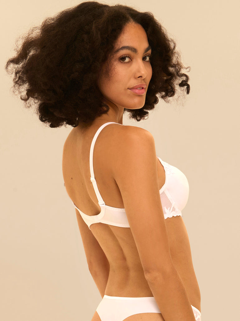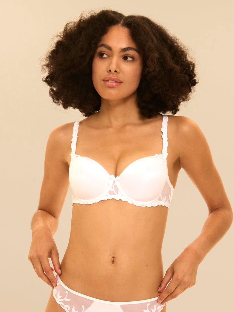 Lijn met borduursel, guipure en tricot, optimaal comfort voor elke dag. Iconisch en tijdloos.