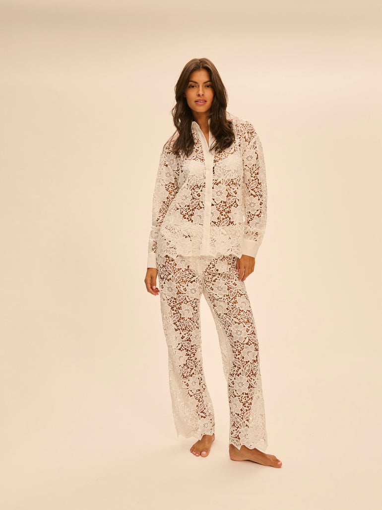 - Kleine parelmoeren knoopjes in dezelfde kleur.