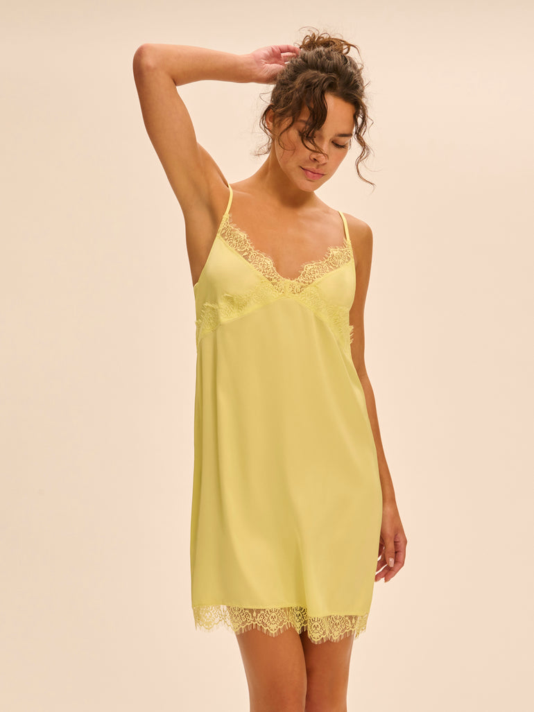 - Fines bretelles réglables en satin.