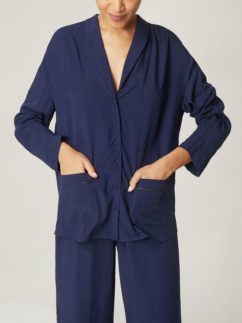 - Guipure openwork on the shoulder and on the back of the pockets.