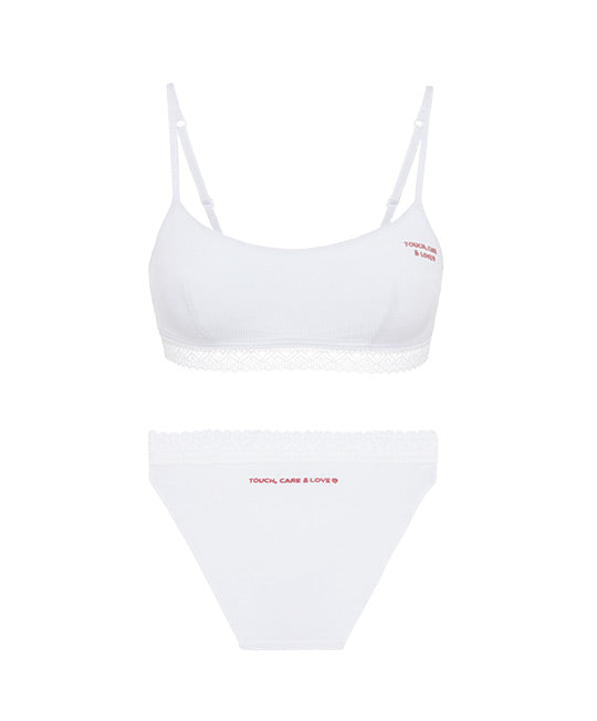 Simone Pérèle dévoile une édition solidaire de sa ligne emblématique Eugénie, aussi féminine que confortable, et brodée du mantra Touch, Care & Love.
