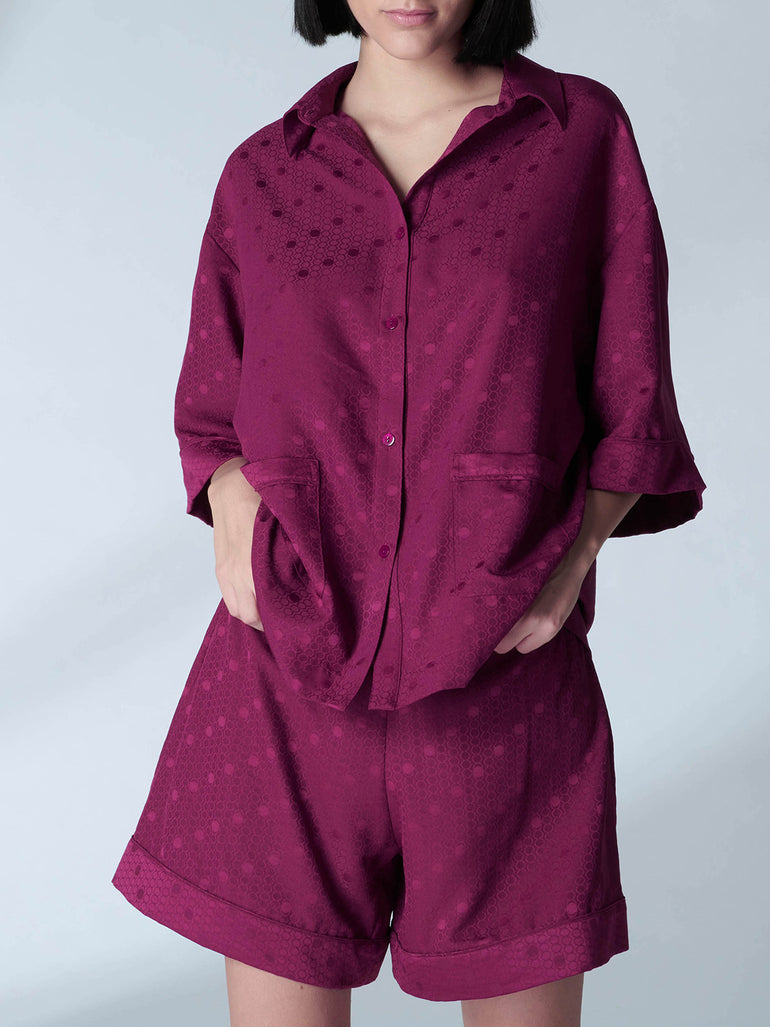 Comme un "tailleur de nuit", le satin Jacquard s'allie à des volumes masculins pour une silhouette mode et des pièces à porter in & out.