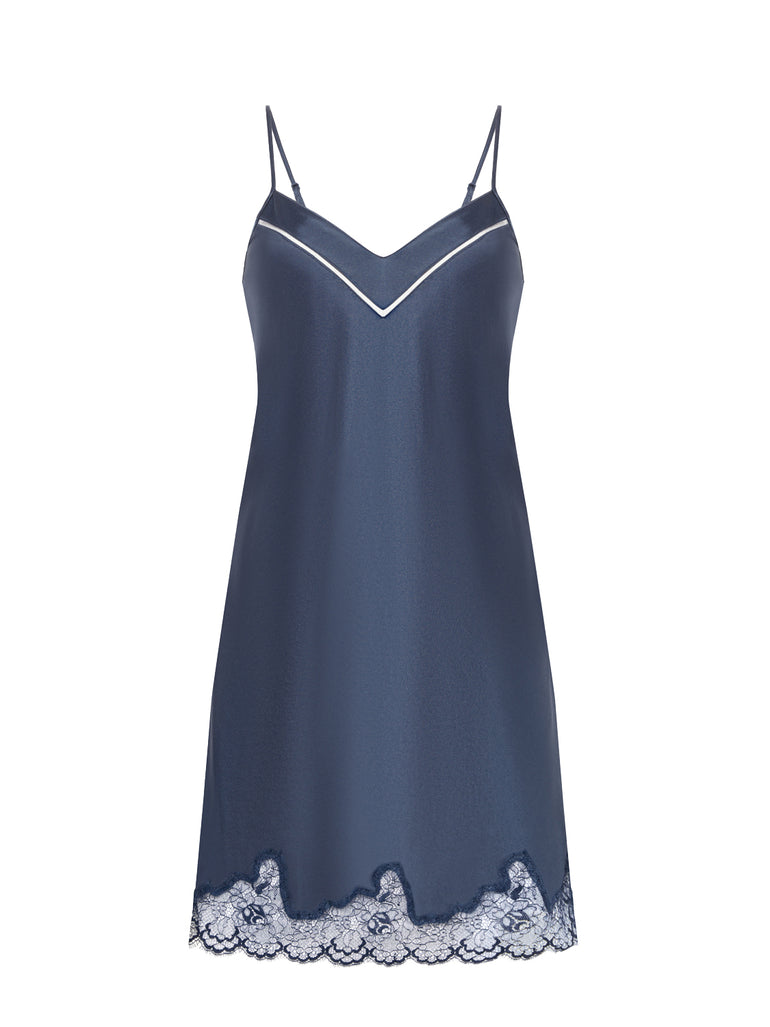 Soie légère réhaussée de dentelle raffinée pour une silhouette élégante.