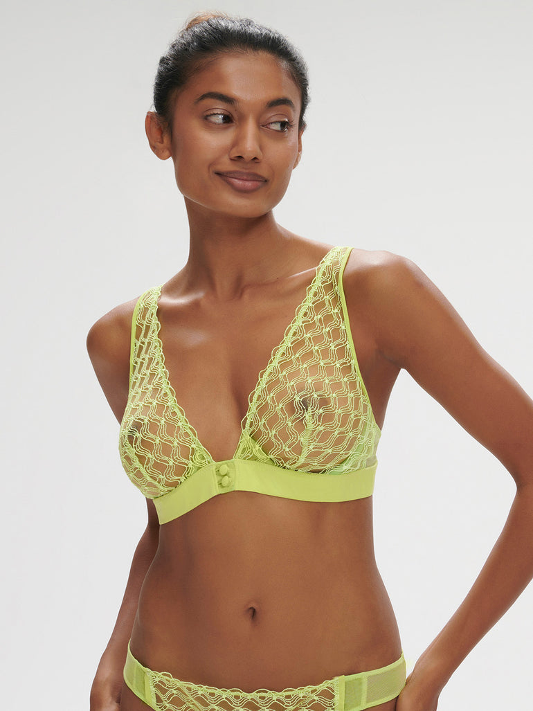 Soutien-gorge triangle en broderie avec armatures cachées.